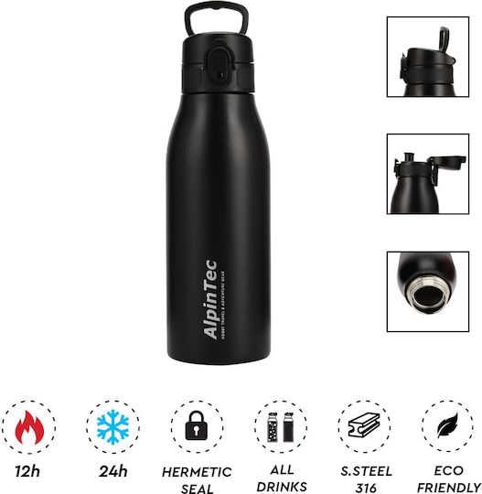 AlpinPro Ανακυκλώσιμο Μπουκάλι Θερμός Πλαστικό 600ml Black ALP-TH-601BL