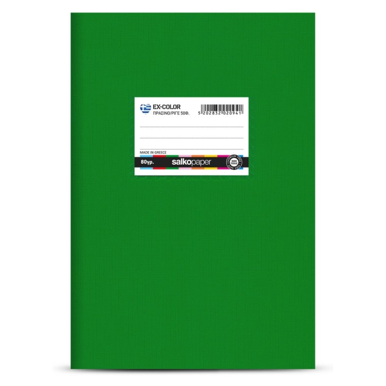 Salkopaper Τετράδιο Ριγέ Καρφίτσα Ex-Color 17x25cm 50φ Πράσινο