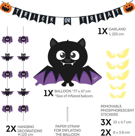 Σετ διακόσμησης για την πόρτα της Legami's Trick or Treat, ιδανικό για να μεταμορφώσει την είσοδό σας τη νύχτα του Halloween. Δημιουργήστε μια ατμόσφαιρα τρομακτική και δελεαστική με αφαιρούμενα αυτοκόλλητα που λάμπουν στο σκοτάδι, διακοσμητικά αξεσουάρ από αλουμινόχαρτο και μπαλόνι «τέρας». Στείλτε ένα τσούξιμο φόβου σε όποιον τολμήσει να πλησιάσει!