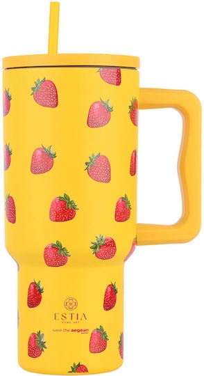 Estia Straw Tumbler XL Save the Aegean Handled Tumbler Θερμός900ml Berry Bright με Καλαμάκι και Λαβή